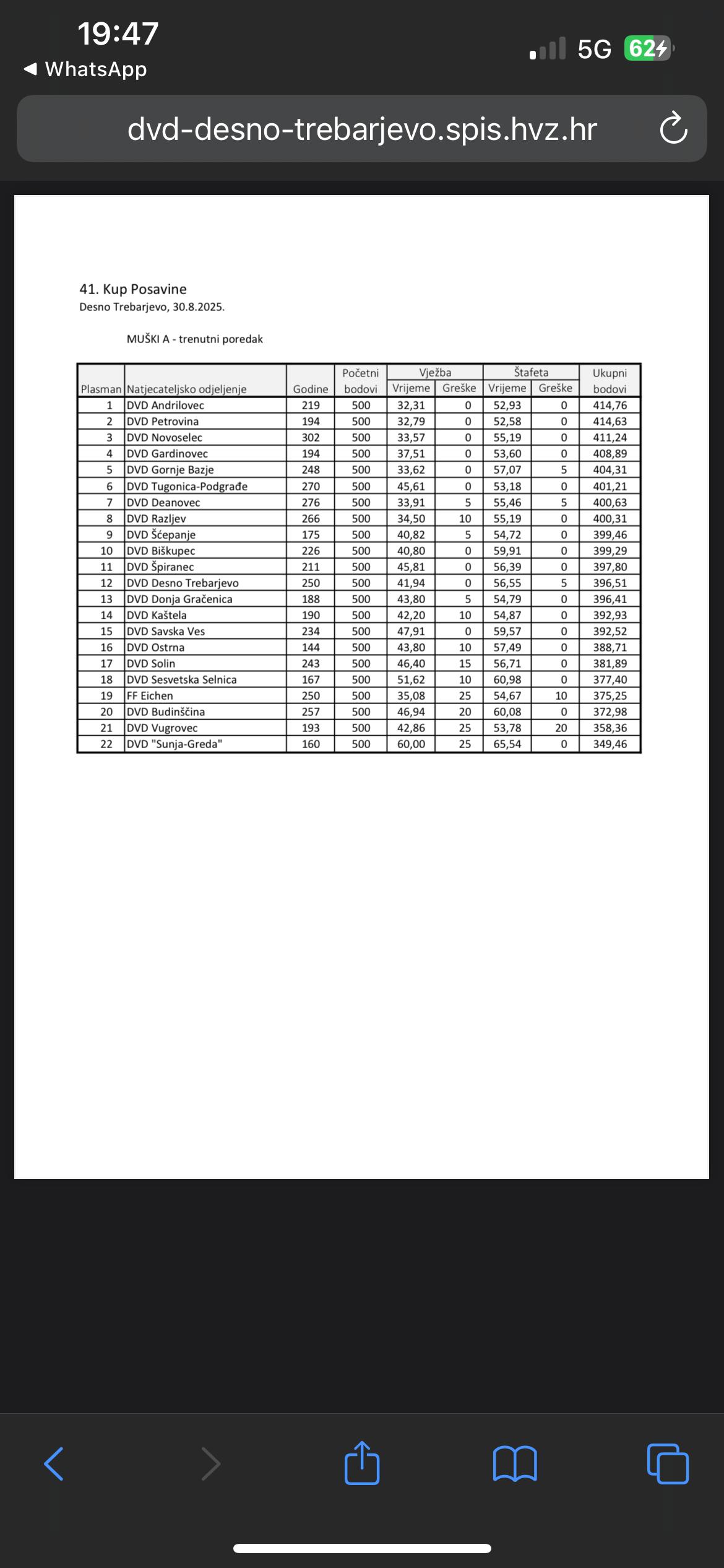 Muška A ekipa seniora DVD Petrovina sudjelovala je na trećem, ujedno i zadnjem vatrogasnom natjecanju HVZ-a u Desnom Trebarjevu i osvojila visoko drugo mjesto. Taj rezultat zaključio ih je u top 3 ekipe ukupnog poretka ovogodišnjih natjecanja HVZa.